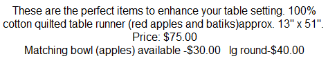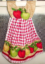 Tired of just a plain towel hanging from your stove. This one looks like a little dress,so you still have the whole towel, not half of one!!, that will match your other kitchen accessories. . Designed by Katie B Price: $15.00ea |