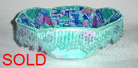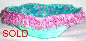 Pastel & Gold Stars on Teal with pink and blue batik Shades of pink and white Ladder Yarn Fringe Size: 10" x 5" x 4"H Price: $40.00 |
