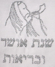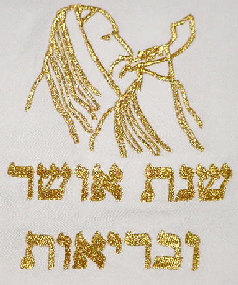 This Challah Cover - Year of Health and Happiness is embroidered in royal blue. Your choice of colors including gold metallic, silver metallic. Cover is 100% white cotton and measures 20" x20". Table napkins also available. Challah cover: $35.00 (Metallic: $40.00) Napkins: 4/$30.00($35.00) 8/$60.00($65.00) Cover with 8 napkins: $75.00 ($80.00) |