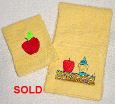Above: These sets consist of kitchen and dish towels. (Cannot purchase separately) The ones above are "apple and honey". Left: This has the Shofar and says Rosh Hashanah. Right: This set is embroidered with an apple in a honey dish. All colors shown I will not split the set. Price: $15.00 per set Special pricing for the Holidays: Buy 3 sets, get 1 set FREE. | ||||||||||||||||||