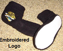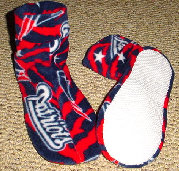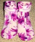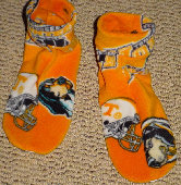 These are samples of my fleece slipper socks. Because of the large variety of sizes, I cannot display every fleece design that I have. These are made with slipper foam (optional) and jiffy grip on the soles.As you can see, I can also embroider your team logo, name, etc. Foam is not put into to infant and toddler sizes. Machine wash and dry. Sizes available: Infant through men's 13. Prices: Infant, toddler, children: $10-$15 Adult: $15-20 Embroidery extra. |