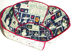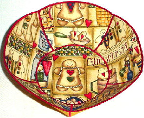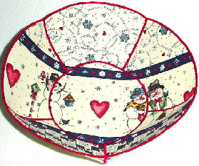 Here are more holiday fabric bowls. They measure 10 1/2" in diameter with a 6" base, and are approx 3 1/2" in height. They have a scalloped-shape border. Price: $20.00 ea 2 for $35.00 |
