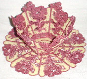 Floral - This bowl and doily is made of mauve and ivory threads. The doily measures 13" in diameter. The bowl is 6" deep, 9" across the top, and a 4" base. Price: $145.00 |