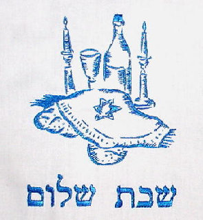 This challah cover is 100% white cotton with a silhouette embroidery (6"Lx7"H) and Shabbat Shalom in Hebrew underneath. It measures 20"x20". Machine wash/dry Your choice of thread color. Price: $35.00 |