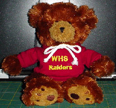 These fleece hats are the school colors of local Warwick High. The one on the right is stitched with a music font. I came up with this idea to help raise money for the Band Boosters. If you need a fund raiser, whether it's for the band or another activity, let my business supply your embroidery needs - hats, t-shirts, sweatshirts. Also for individual sales. Teddy bears available with hoodies or T-shirts For group sales please email or call. |