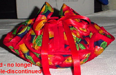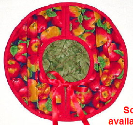 This casserole carrier is made of 100% cotton fabric, fully quilted and lined. The open circle on top allows room for the knob/handle of the lid and the ties provide a secure fit on the lid itself. This will hold a 2 or 2 1/2 quart round casserole dish. This makes a beautiful gift. It is also the perfect item to carry those delicious dishes (hot or cold) to holiday celebrations. Your choice of fabric design and colors. Available in Judaic fabrics. Price: $40.00 |