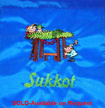 This Sukkot design shows the building of the Sukkah. It is embroidered on100% heavy weight nylon flag fabric, which will withstand all types of weather. It is also washable It measures approximately 14"W x 15"H. Price: $50.00 Also available: 4 Species; Sukkah with lulav and etrog These flags can also be used as a wall hanging inside or at the entrance to the Sukkah. Would also be great stitched on cotton and displayed in a classroom. |