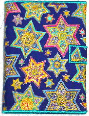 These journal covers measure approx 5"x7", have a velcro closure, and come complete with 256 ruled pages, ivory paper, and ribbon marker. They make great Confirmation gifts, or for USY members to record memories of encampments and events. Your choice of fabric. Can also be embroidered or monogrammed (extra charge). Price: $20.00ea Refills also available: $8.00ea See next page for more fabric designs |