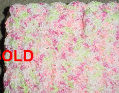 This afghan, hat, and cardigan are 100% acrylic, with variegated pink, rose, lime green, and white colors in shell crochet. The matching hat (size 12-18mos): $15.00 Blanket measures approx. 36"x47" : $55.00 Cardigan (size 12mos+): $40.00 Machine wash, cold water. Tumble dry, low setting, remove promptly. SAVE $25.00 when buy the set! Set price: $85.00 |
